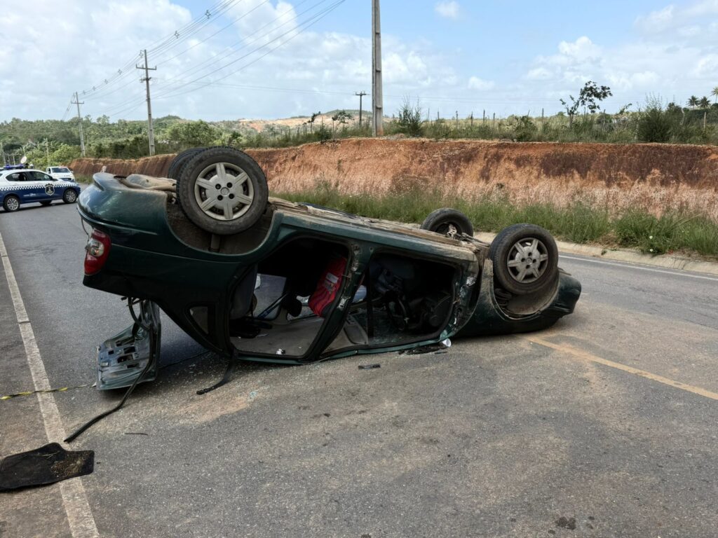 Motorista fica ferido após capotar carro na SE-464 em São Cristóvão
