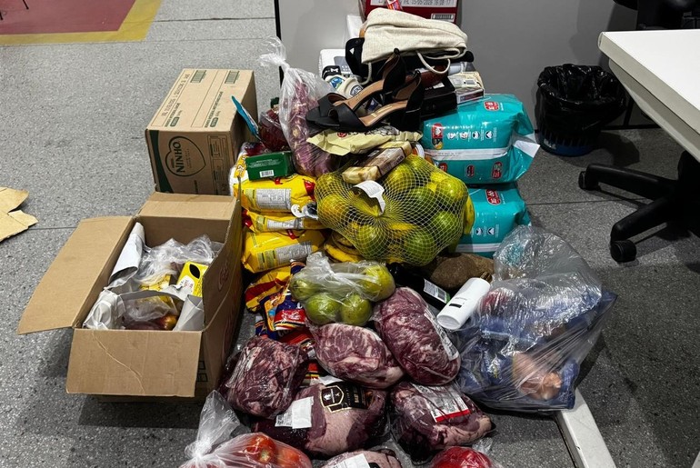 Dentro do carro, os policiais encontraram os produtos furtados, entre eles 84 barras de chocolate, pacotes de camarão e carne, potes de creme de avelã, roupas e utensílios domésticos.