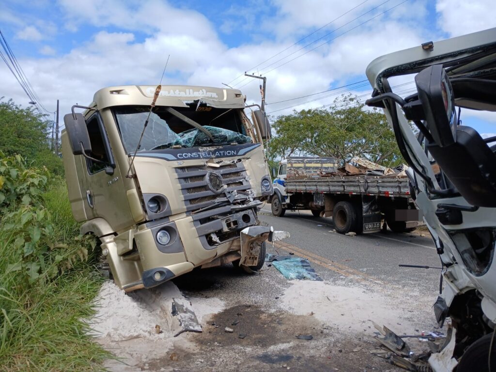 Segundo o Batalhão de Polícia Rodoviária Estadual (BPRv), um dos veículos invadiu a contramão e bateu de frente com o outro. O motorista do caminhão Ford Cargo ficou preso nas ferragens, foi resgatado pelos bombeiros e levado ao hospital pelo Samu.
