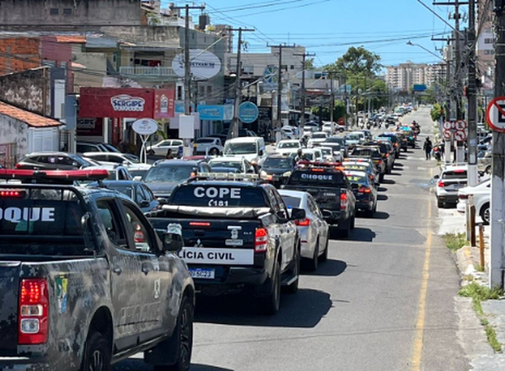Um cortejo com diversas viaturas da Polícia Rodoviária Federal (PRF), Polícia Militar (PM) e Polícia Civil foi realizado em homenagem ao policial na manhã desta quinta-feira (13).