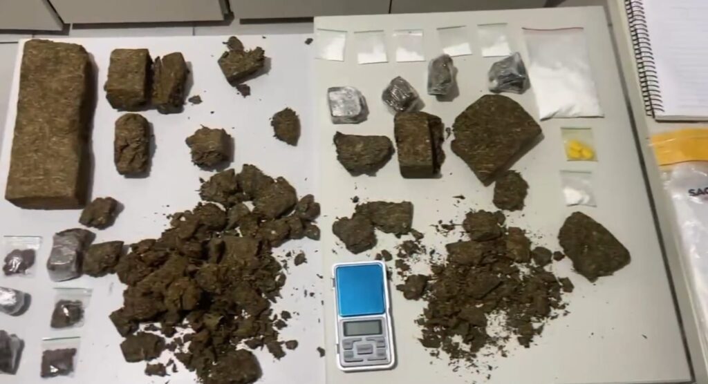 No local indicado, os policiais localizaram a blogueira, bastante conhecida nas redes sociais da cidade. Durante as buscas, foram apreendidos aproximadamente 2 kg de drogas, incluindo erva esverdeada semelhante à maconha e diversos sacos plásticos do tipo zip lock contendo um pó branco, possivelmente cocaína. Também foram encontrados uma balança de precisão, um caderno de anotações e materiais para embalagem de entorpecentes, o que reforça a suspeita de atuação no tráfico.