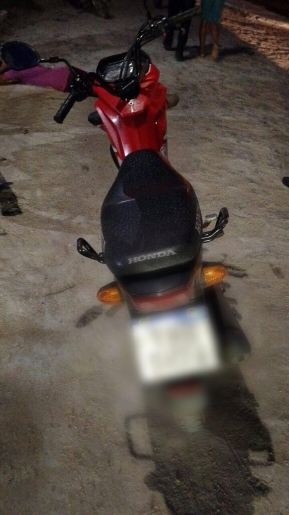 Em rondas pela cidade, a equipe localizou a motocicleta em uma oficina situada no Conjunto Manoel Marinho Barbosa. O estabelecimento pertence a um indivíduo egresso do sistema prisional, já suspeito de envolvimento em roubos de motocicletas. No interior da oficina, os militares também encontraram o celular roubado, que estava em posse do proprietário do local, identificado como receptador.