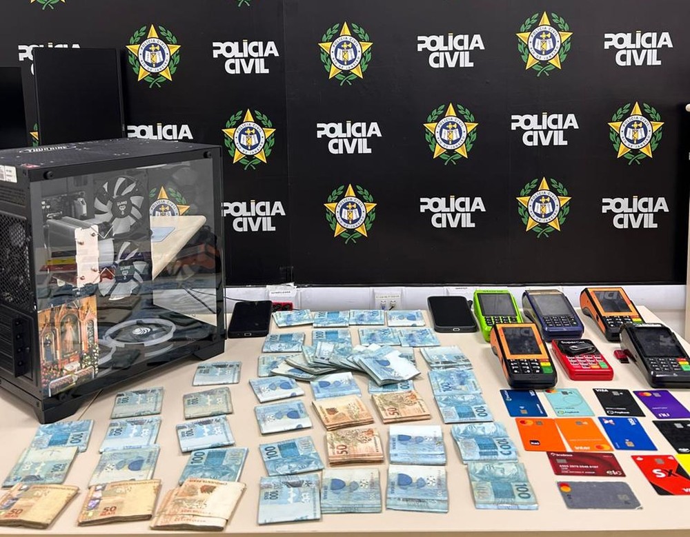 Durante a ação, os policiais apreenderam cerca de R$ 50 mil em dinheiro, além de computador, celulares, cartões de crédito e maquininhas de cartão. O material será analisado e novas prisões não estão descartadas.