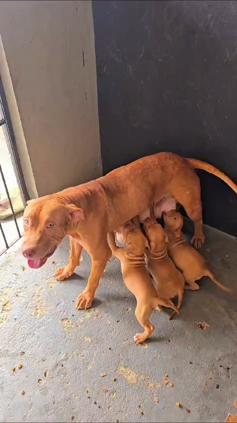 No imóvel, foram encontrados um casal de cães adultos e seis filhotes vivendo em ambiente confinado. Todos apresentavam infestação por carrapatos e problemas de pele, além de marcas sugestivas de brigas entre os animais, o que reforçou a suspeita de condições inadequadas de criação.