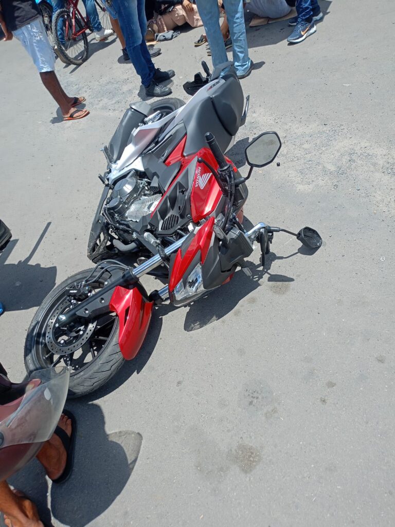 O casal, que estava na motocicleta, sofreu ferimentos e aguardava atendimento do Serviço de Atendimento Móvel de Urgência (Samu) para serem encaminhados ao hospital.