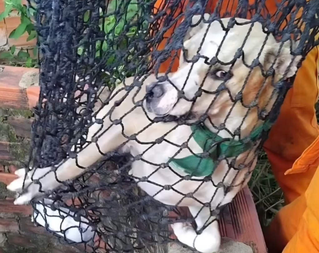 O cão foi resgatado com sucesso e devolvido aos seus tutores sem ferimentos.