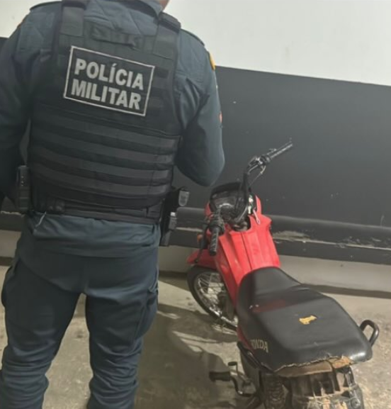 Na verificação do veículo, os militares constataram que a motocicleta estava sem placa e com os números de chassi e motor suprimidos.