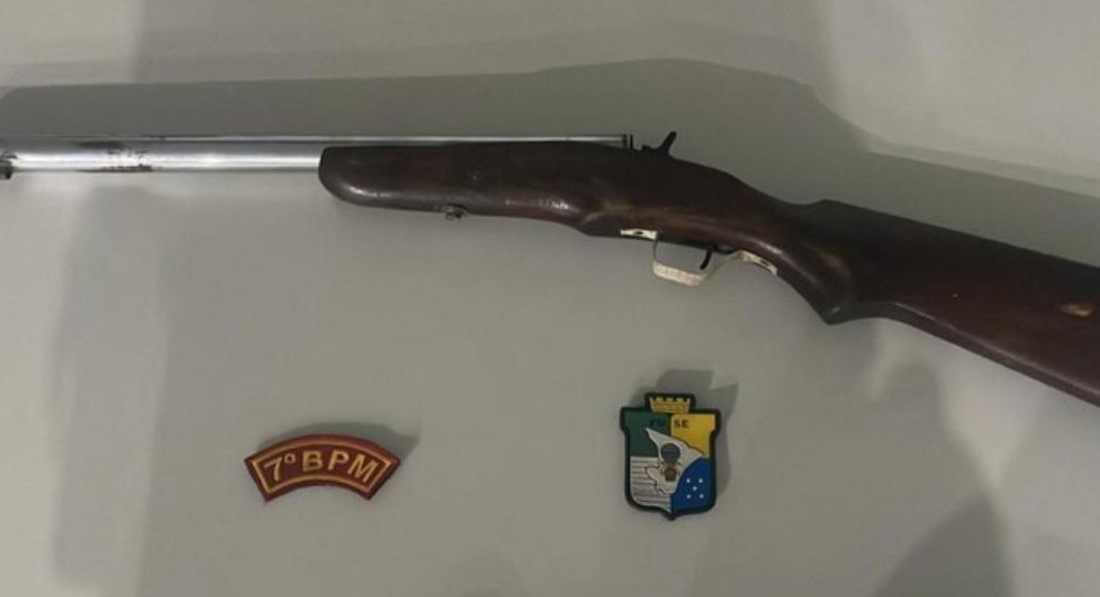 No imóvel, foi encontrada uma espingarda que, segundo as informações, teria sido utilizada na ameaça.