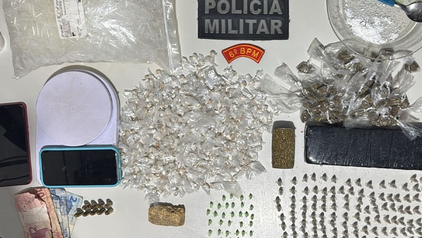 De acordo com a Polícia Militar, a ação teve início após denúncias. Os policiais localizaram um suspeito em um veículo de transporte alternativo, acompanhado de duas mulheres, transportando substâncias análogas à maconha e cocaína já fracionadas para venda, além de dinheiro.