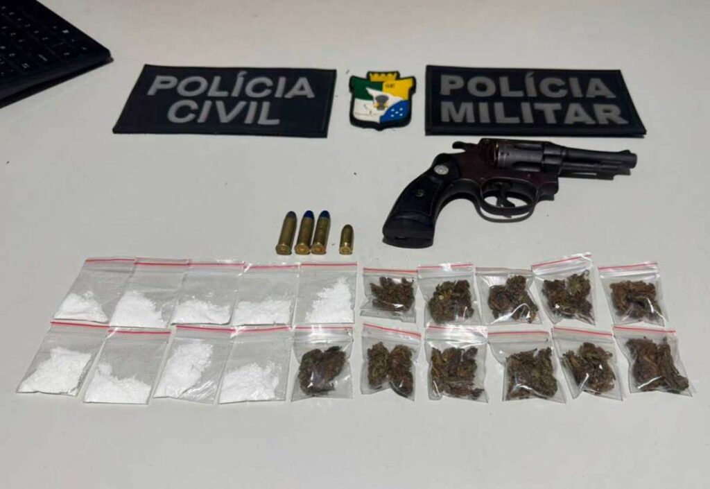 Após o confronto, os policiais apreenderam a arma utilizada pelo foragido, munições de diferentes calibres, além de porções de substâncias análogas à maconha e cocaína. Também foi encontrado um aparelho celular.