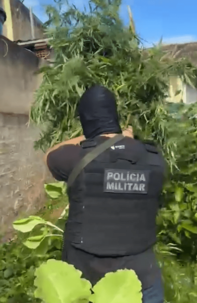 Devido à grande área de vegetação, a equipe do canil foi acionada e, durante as buscas, foi encontrada ainda uma plantação com 12 pés de maconha.