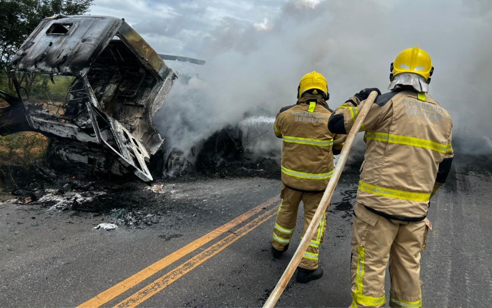 Um caminhão carregado com pneus pegou fogo nesta quarta-feira (29), na rodovia SE-170, entre os municípios de Riachão do Dantas e Tobias Barreto.