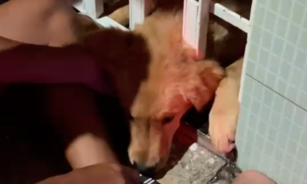 Segundo a corporação, o filhote, da raça Golden Retriever, estava com a cabeça presa entre as grades do portão da residência. A equipe do 5º Grupamento de Bombeiros realizou o resgate utilizando técnicas adaptadas, garantindo a retirada segura do animal.